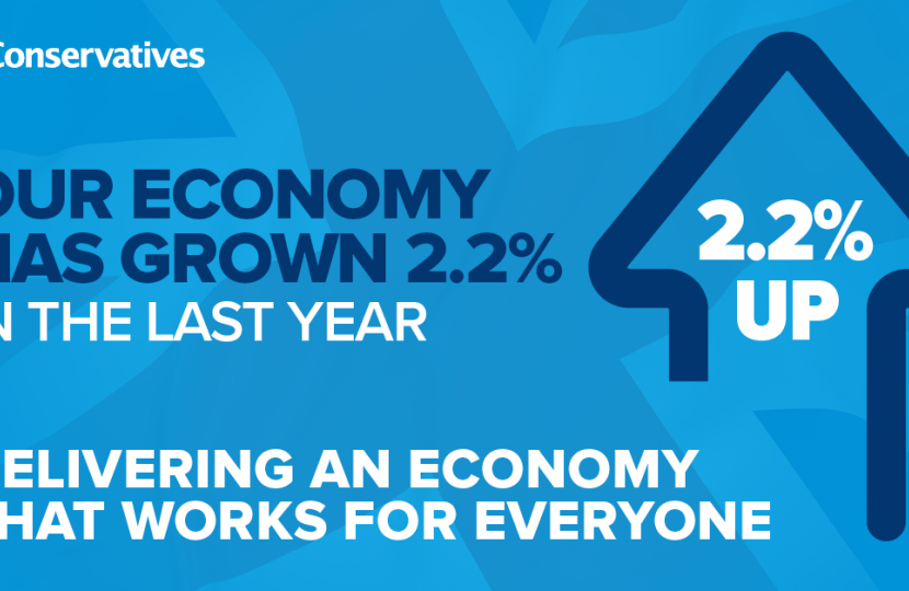 Tweet Wednesday, 27 July, 2016 Westminster News Our economy has grown 2.2% in the last year. Conservatives are delivering an economy that works for everyone.