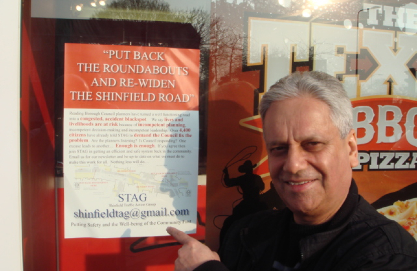 Cllr Parry Batth raised the issue at a meeting of Reading Borough Council, asking “Despite Reading Borough Council’s reluctance to acknowledge the ongoing issues caused by the replacement of the Shinfield Road roundabouts with Traffic Lights, the local residents, businesses and road users continue to suffer daily from damaging traffic congestion caused by the introduction of the untimely and unwanted traffic Maidens Traffic Lights. As a direct consequence the local businesses have suffered from drop in sales; Road users suffer from prolonged and delayed journeys; Rising Pollution levels from congested traffic are a potential health hazard; Local residents’ safety has become a real issue. Will the Lead Councillor please explain as to when the Reading Borough Council will act to listen to the outcries of local businesses, residents and road users to return the roundabouts to replace the traffic lights to remedy ever increasing traffic congestion caused directly by the unwanted traffic lights designed and approved by the Labour led administration?”